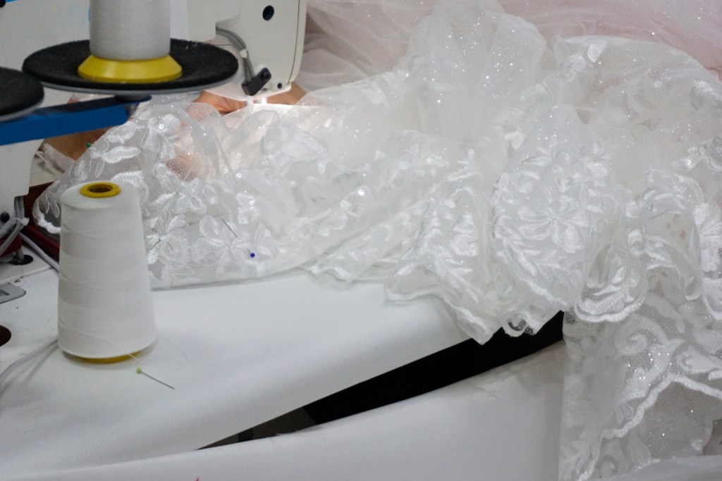 光を受けてきらめくレース刺繍と、ふんわり広がるスカートで永遠の憧れを形にした、正統派プリンセスドレス。