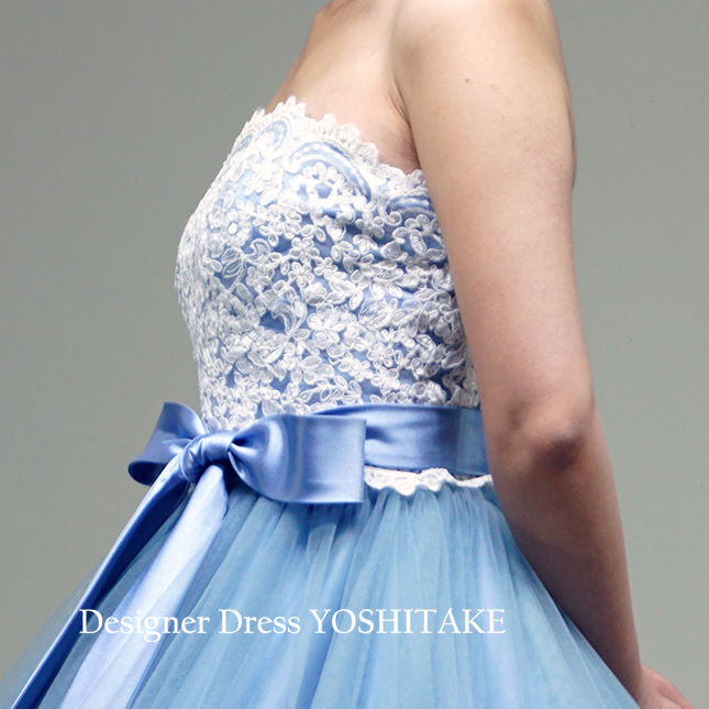 こちらのドレスは、白いレースはそのままで他の色味を変更して制作しています。
