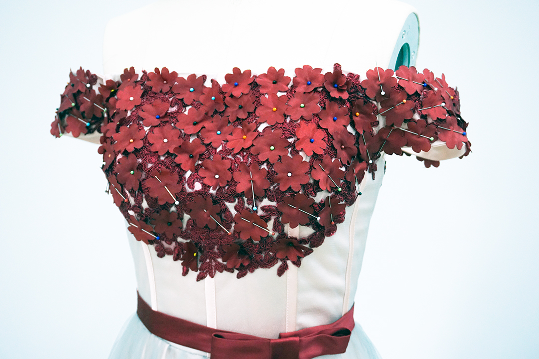 そうして縫い付けていますと、今回のドレスが出来上がります。