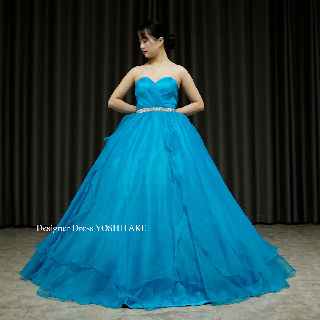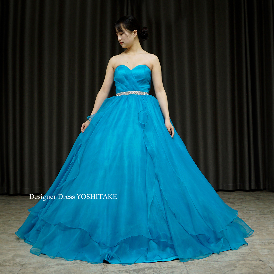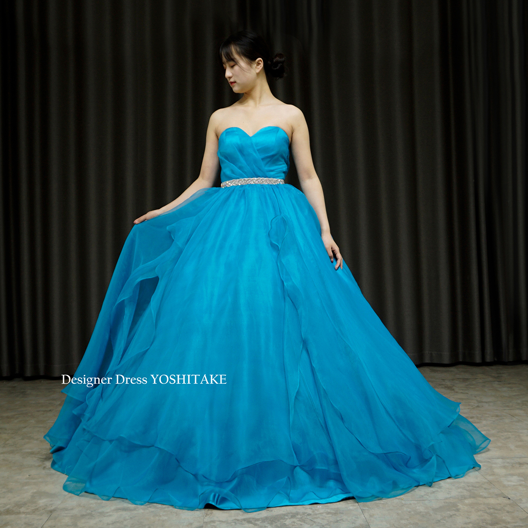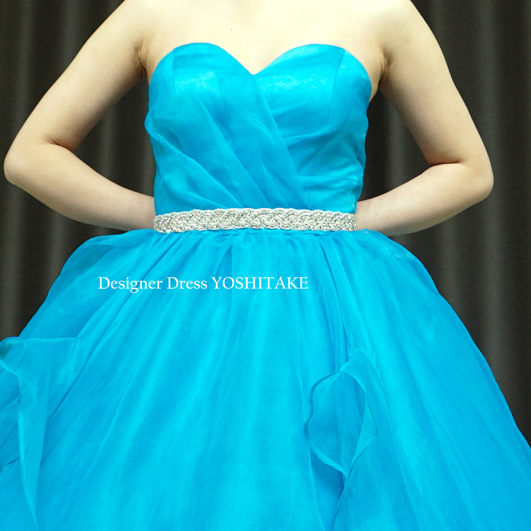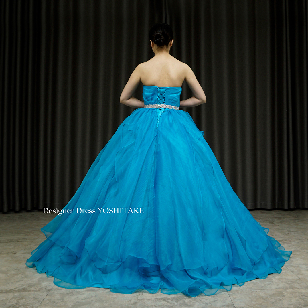 ドレス全体は、スカイブルーのオーガンジードレスで構成しております。