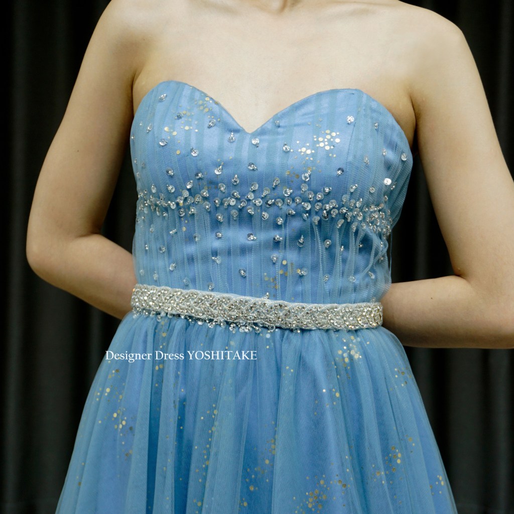 大人可愛いいブルーを着こなしたい花嫁様や演奏家の皆様におすすめのドレスです。