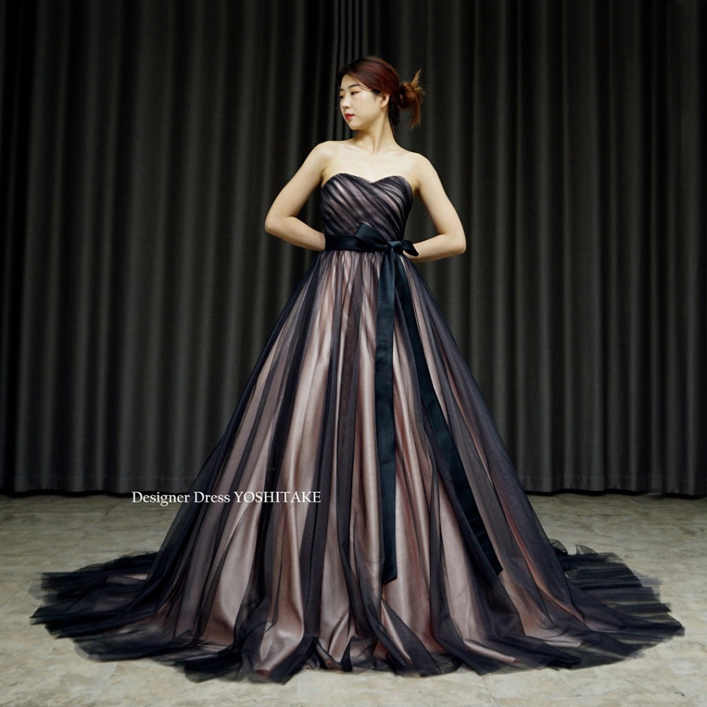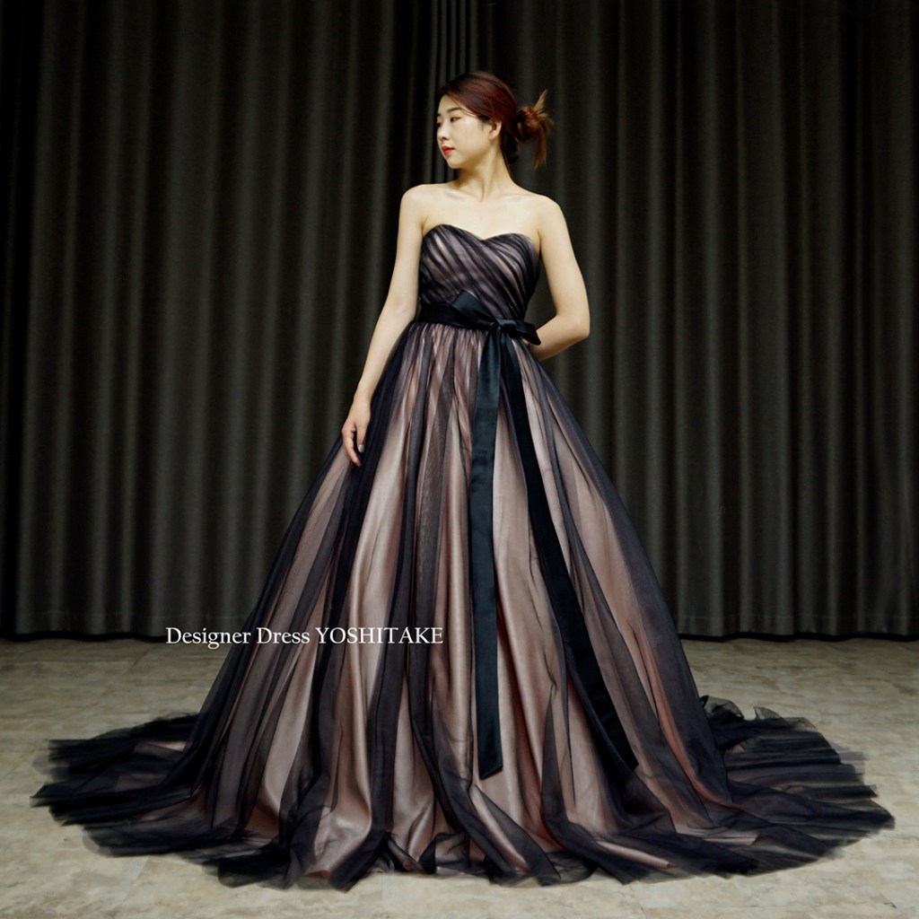 明るさと暗さのコントラストが特徴のドレスです。黒サシェ付。