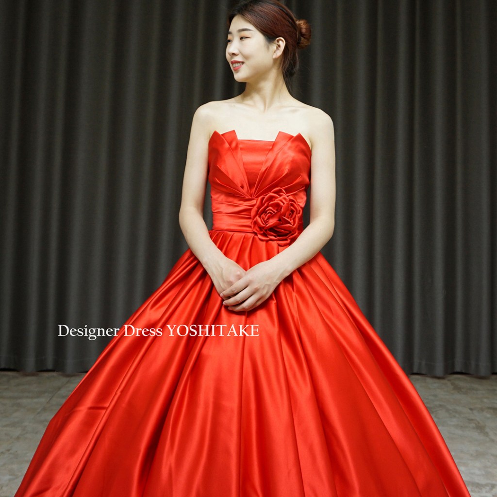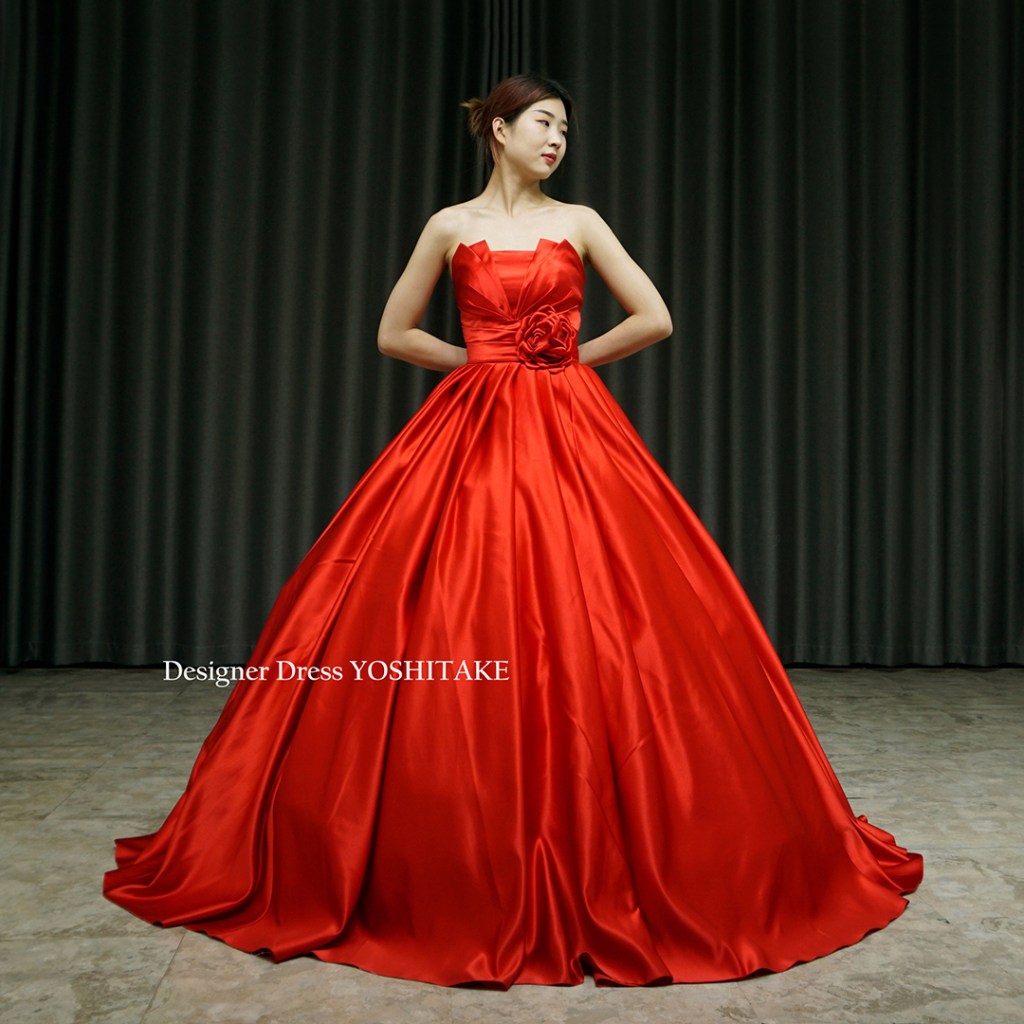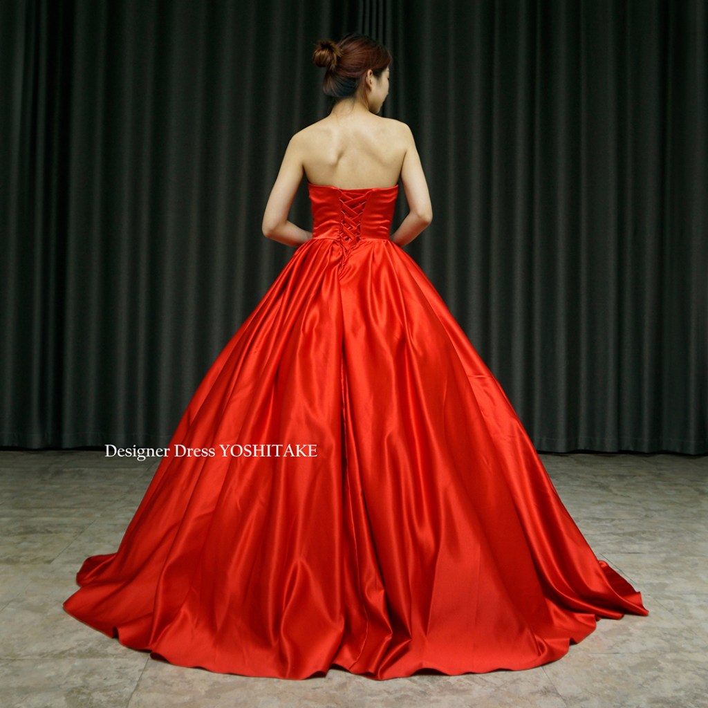 ビジューやレースなどの装飾を省きサテンの重厚感を際立たせたデザインです。