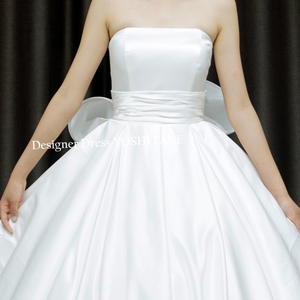 フロントからはシンプルなサテンオンリーの白ドレス。