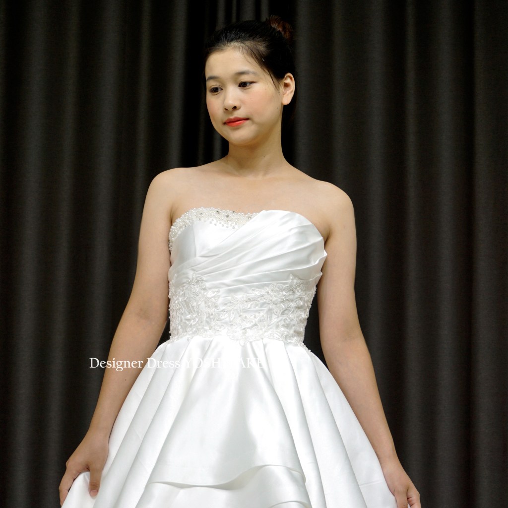 スカートは、一番上のサテン生地を複数のレイヤーにしまして、