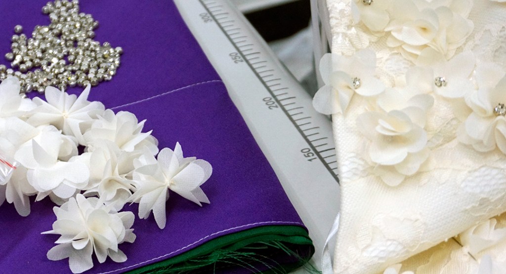ドレスにひとつずつつけていきます。