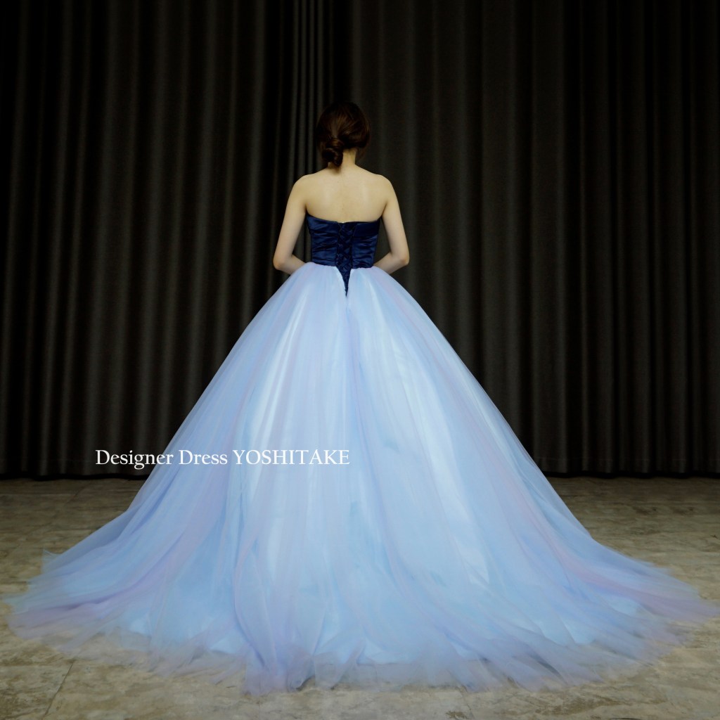 自由度が高く、ウエストにリボン、コサージュ、または後ろに大きなリボンなどいろいろなアレンジが楽しめるドレスです。