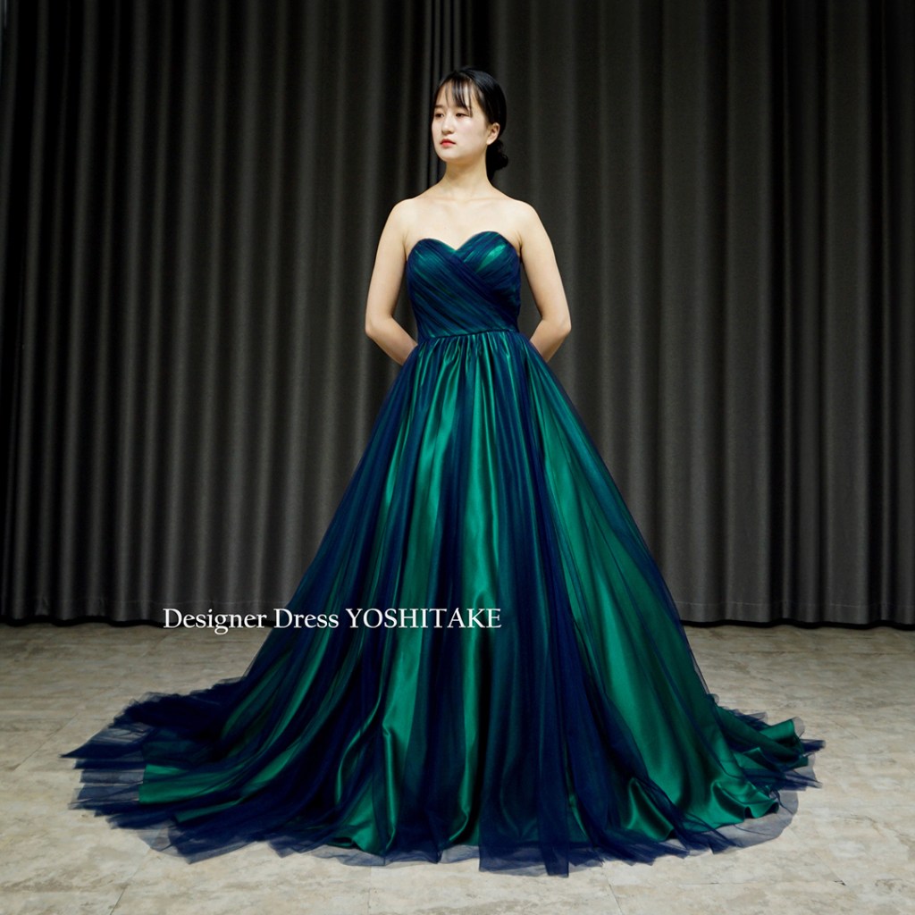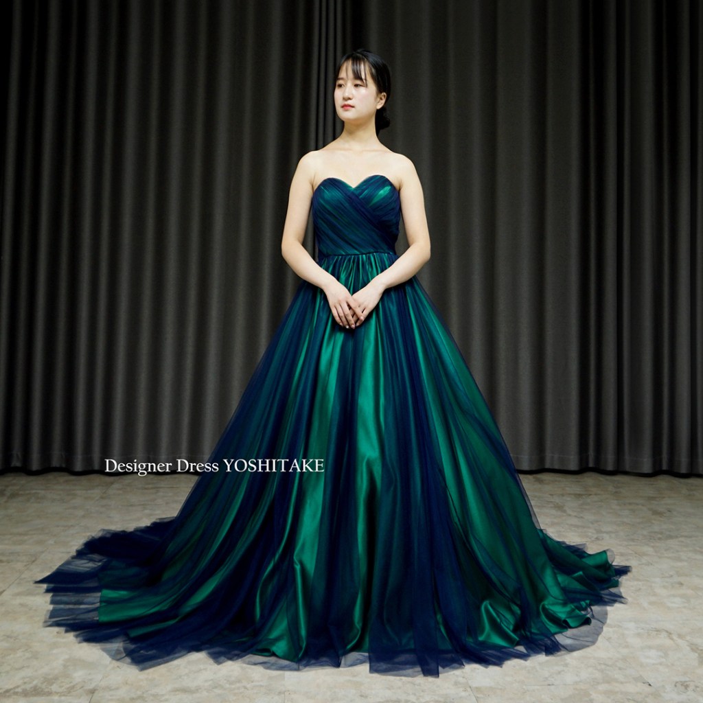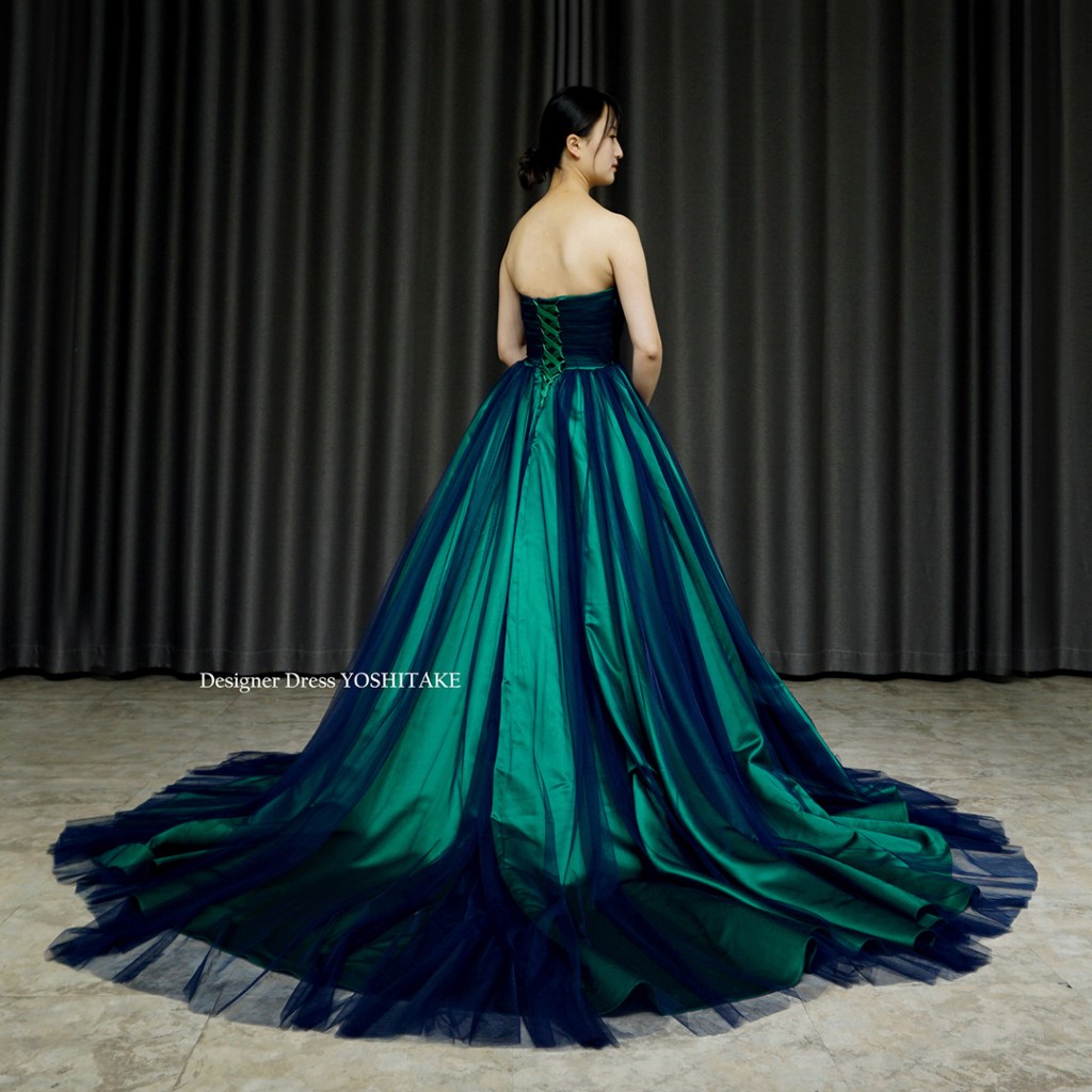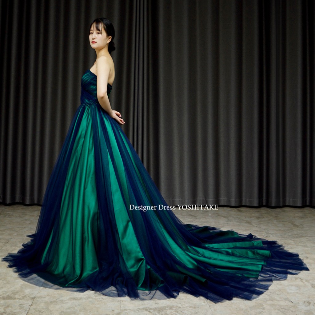 ベースのサテンはグリーン、その上にネイビーチュールをかけました。