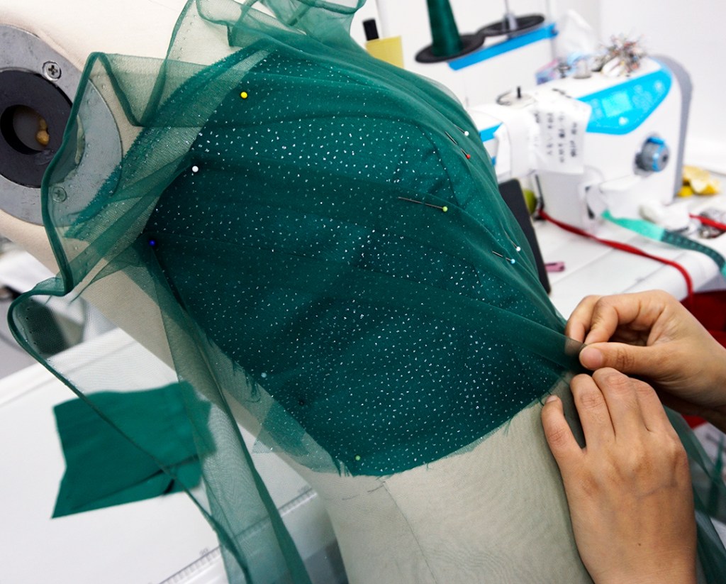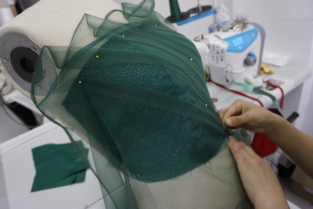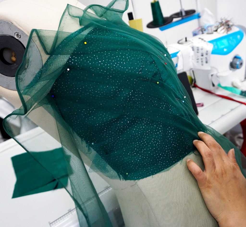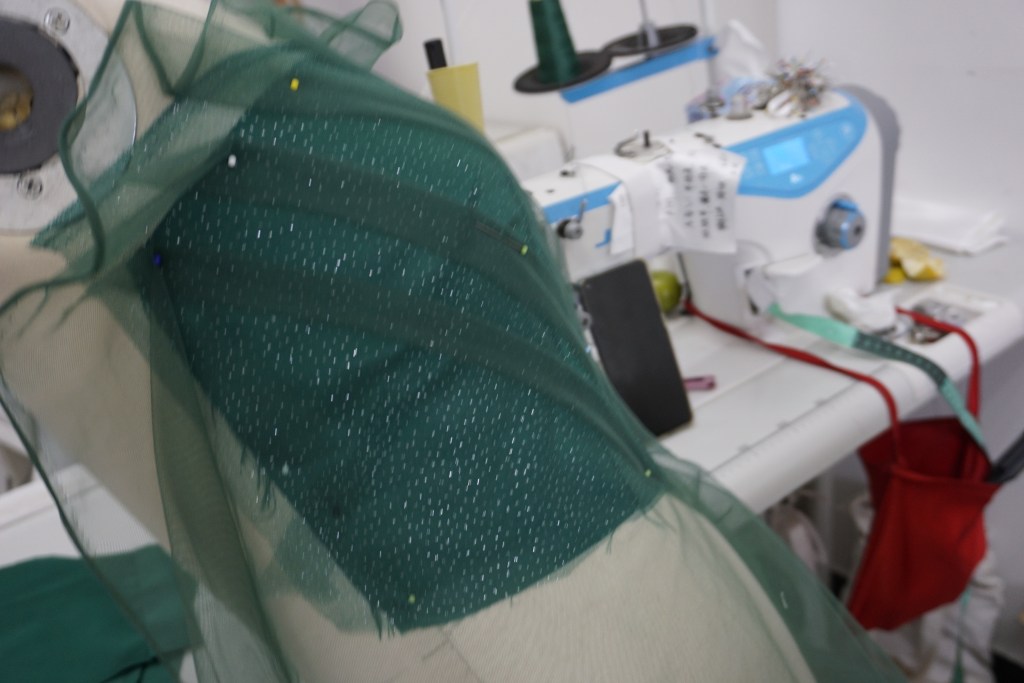 こちらの上に、一般のグリーンチュールの皺をひとつずつ制作していきます。