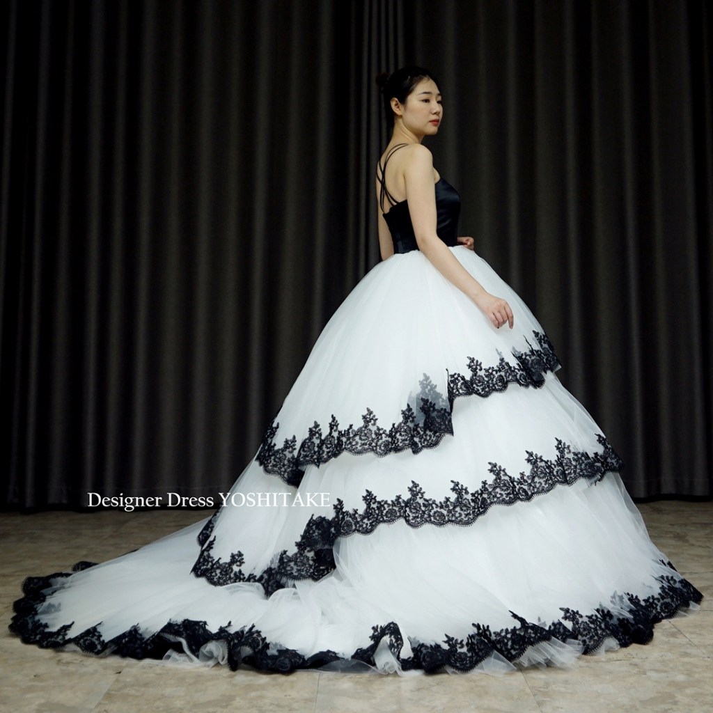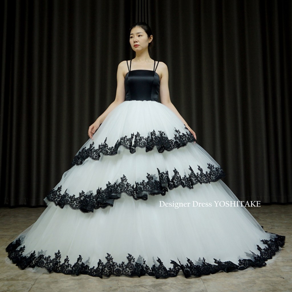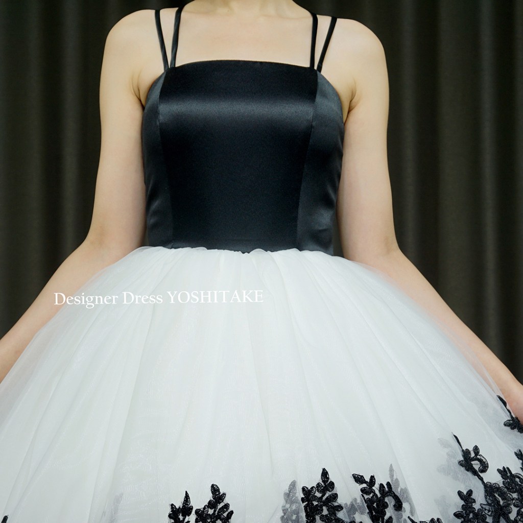 完全オリジナルカラードレス。スカートはチュール素材で3レイヤーにて黒レースでまとめました。