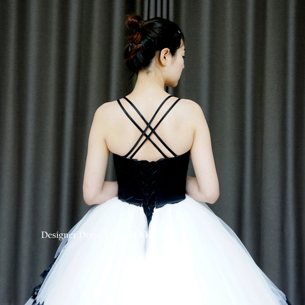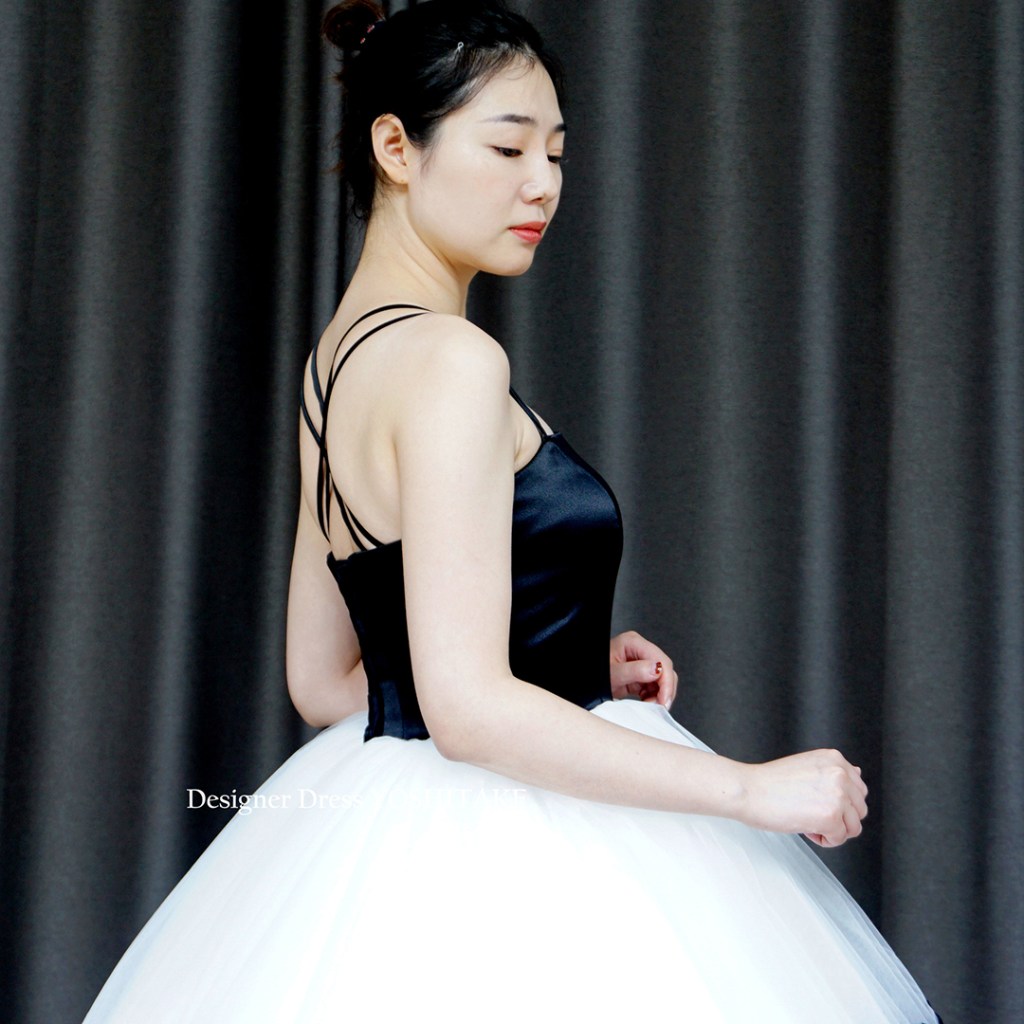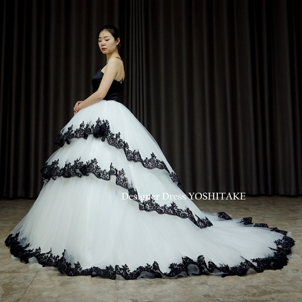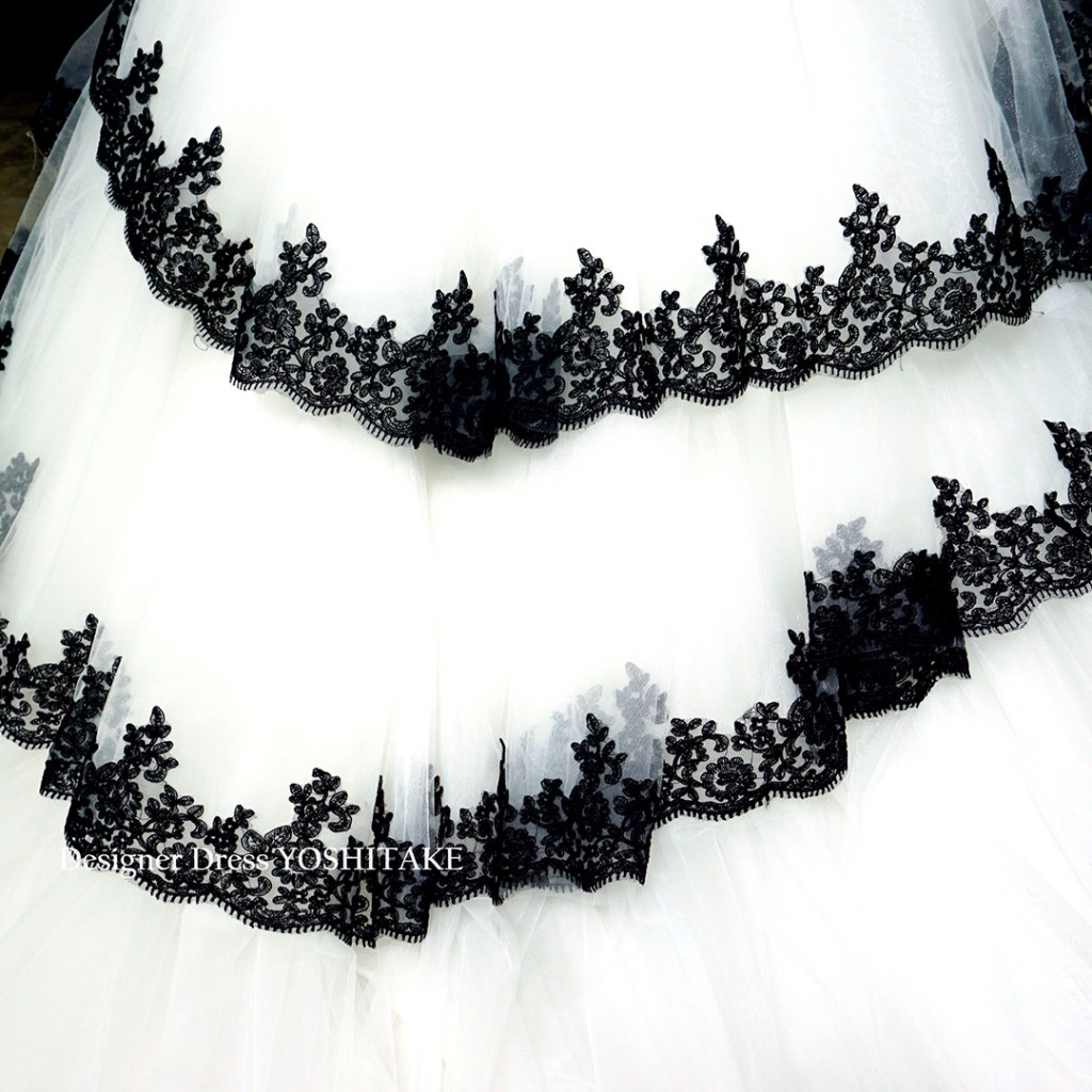 完全オリジナルカラードレス。スカートはチュール素材で3レイヤーにて黒レースでまとめました。