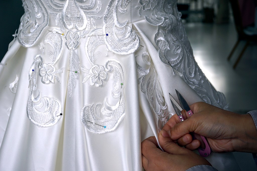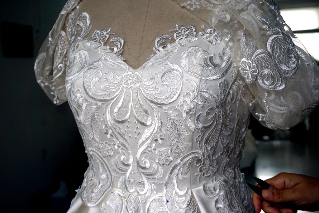白ドレスレース制作 on 2021年11月17日2021年11月16日 By Designer Dress yoshitake サテンのドレスに、 レースをとりつけている作業風景です。 ひとつずつ位置を針で固定し、 まずはバランスを確認します。 全体を調整し、そのうと縫い付けていきます。 共有: クリックして X で共有 (新しいウィンドウで開きます) X Facebook で共有するにはクリックしてください (新しいウィンドウで開きます) Facebook いいね 読み込み中… 関連