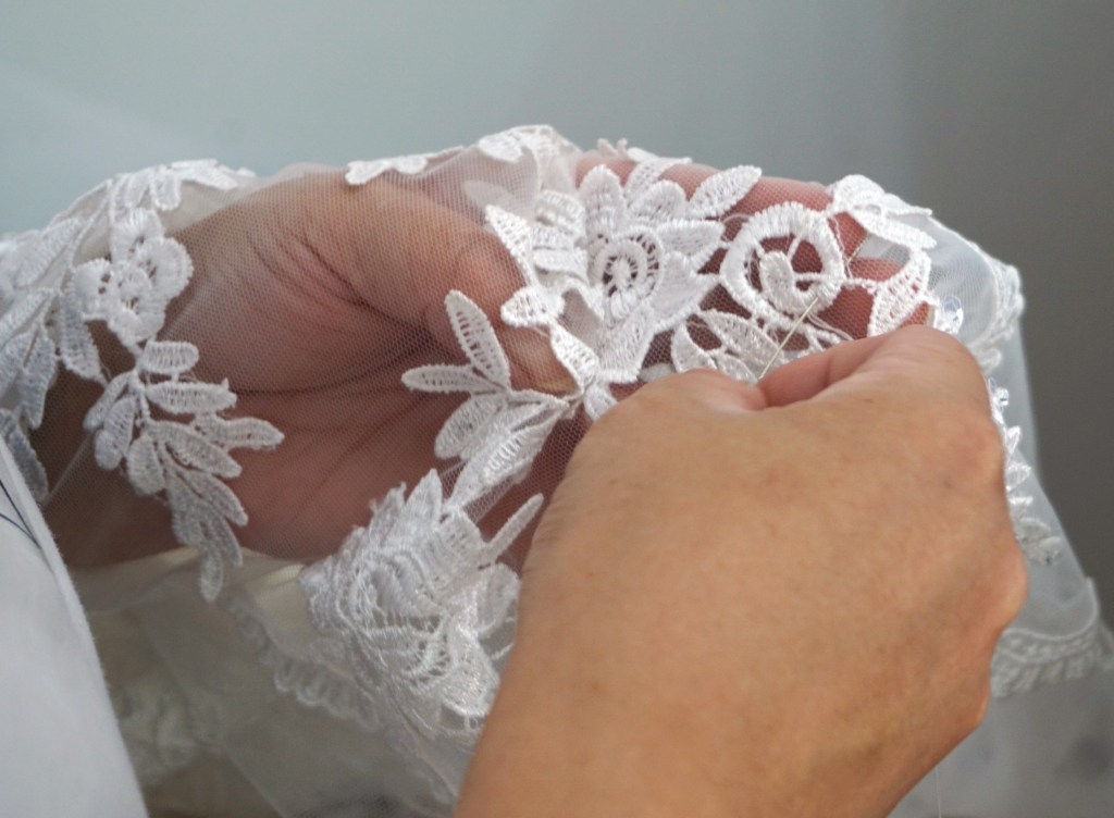 こちらは、スカートのチュールに、レースを縫い付けてます・