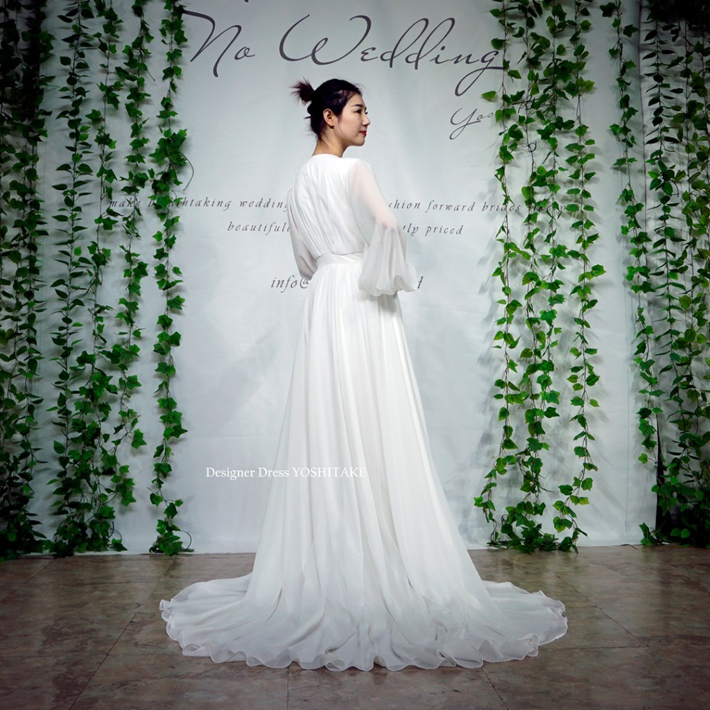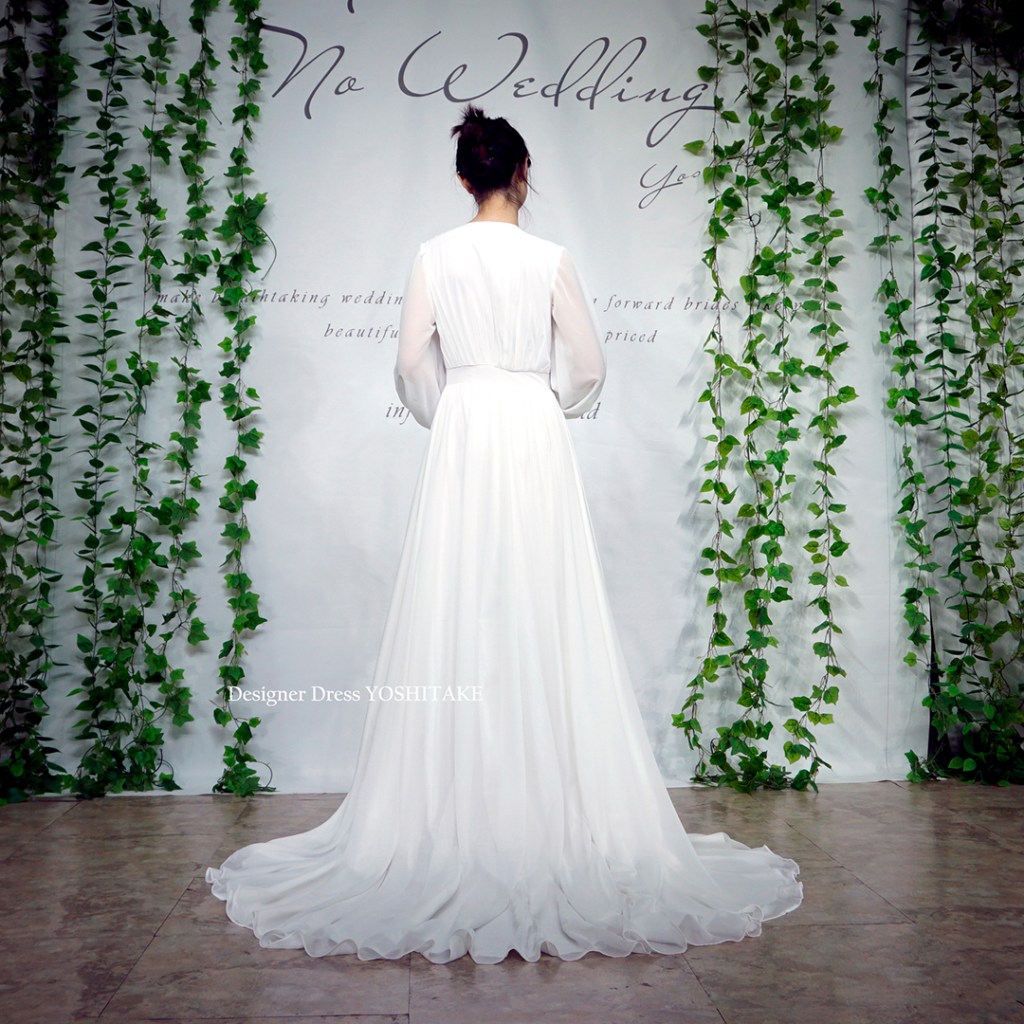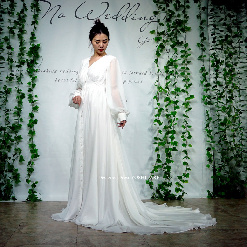 大変軽やかなドレスで、ガーデンウエディング、前撮りや撮影にも最適です。