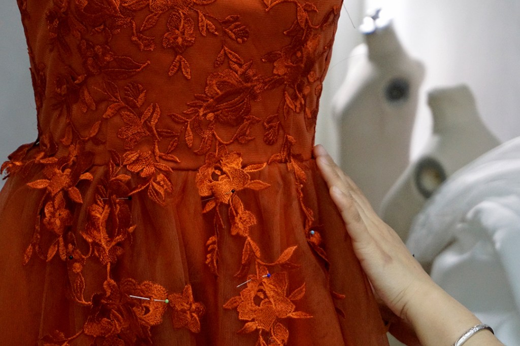 ただいまテラコッタカラードレスを制作中。