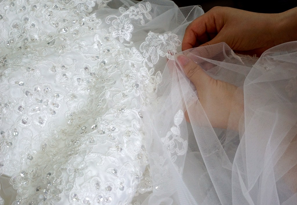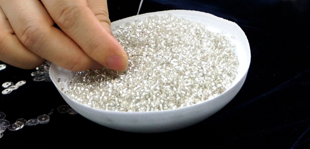 しかしながら、ビジューは一つずつ縫い付けていますので、