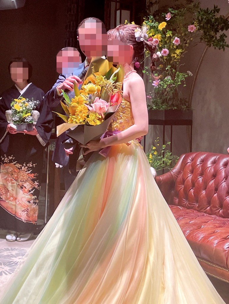 お色直しで改めて入場した際、ドレスを見たゲストの方達から「おおぉ……!」と驚いたリアクションがありました。