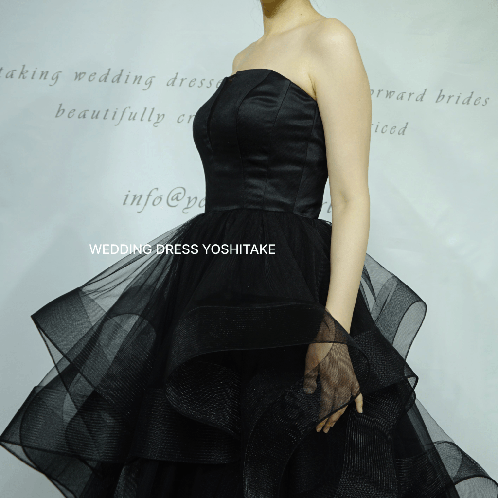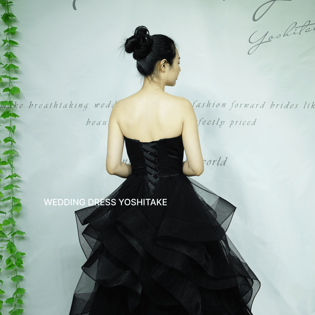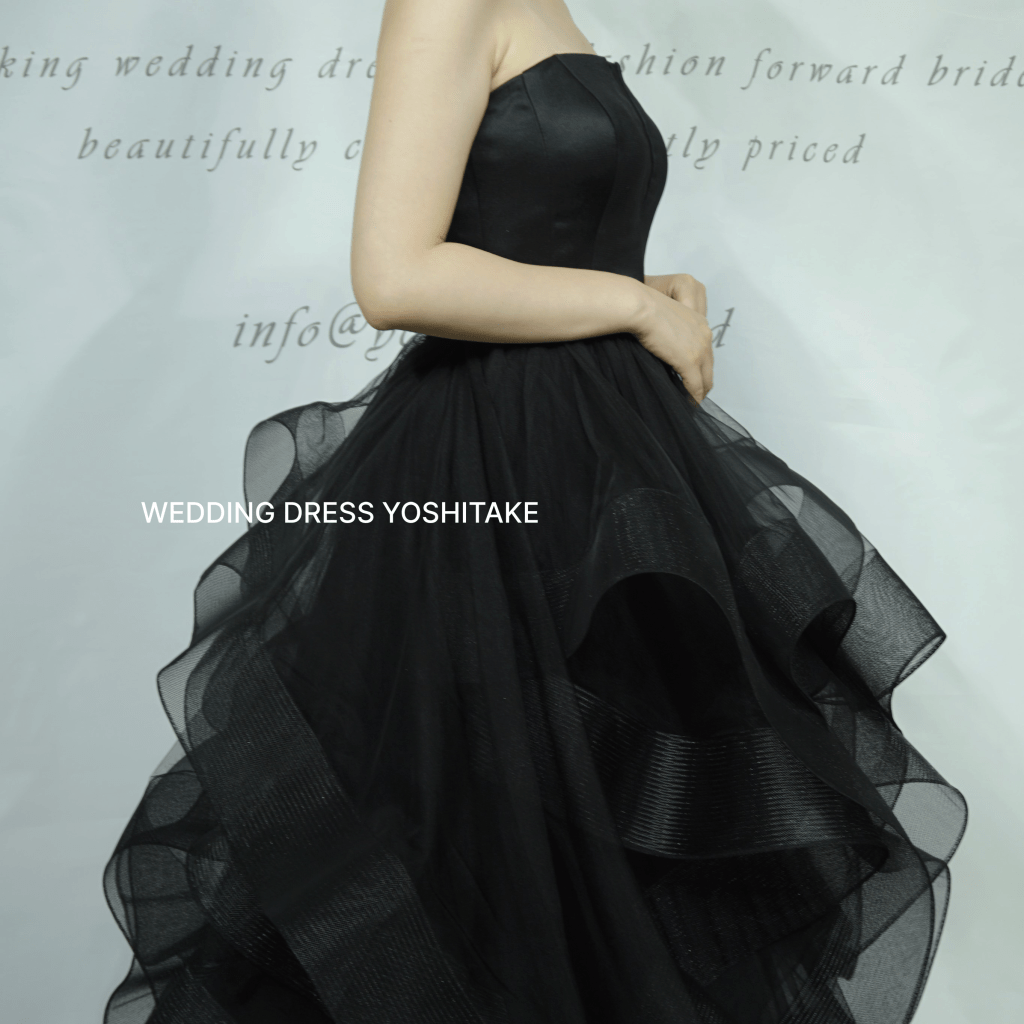 黒を基調としたスタイリッシュなデザインで伝統的なウェディングスタイルから一線を画します。