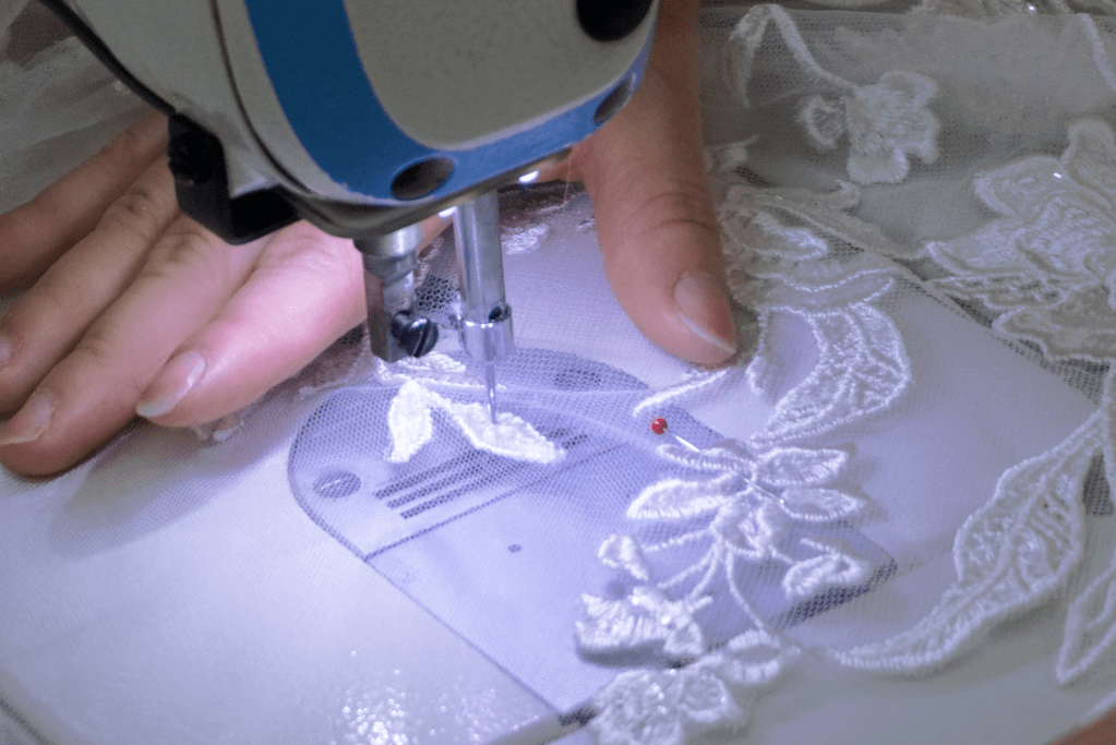 チュール等のメッシュ生地は繊細で透け感のがあり、刺繍パターンの複雑な美しさを引き立ててくれます。