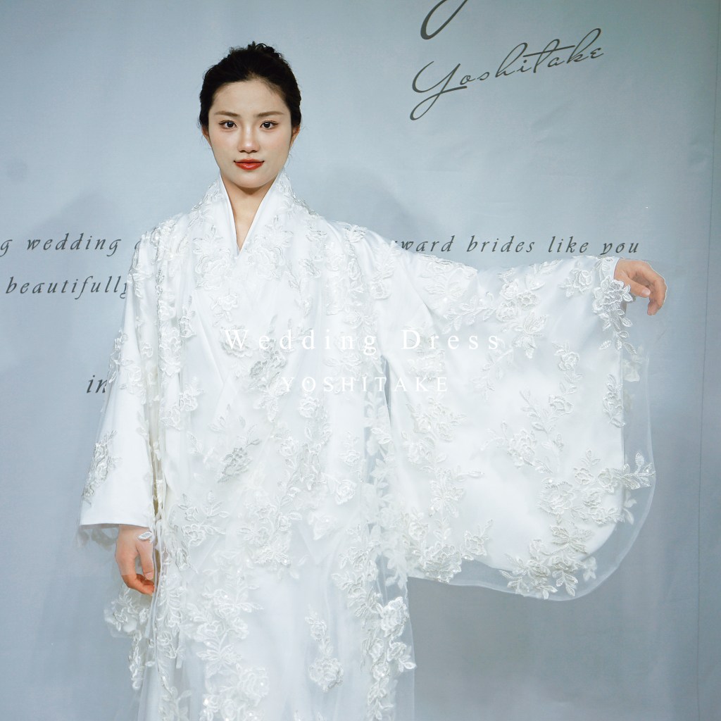 格式高い白無垢の静謐さと、レースの華やぎが共鳴するデザイン。