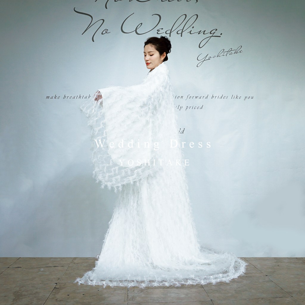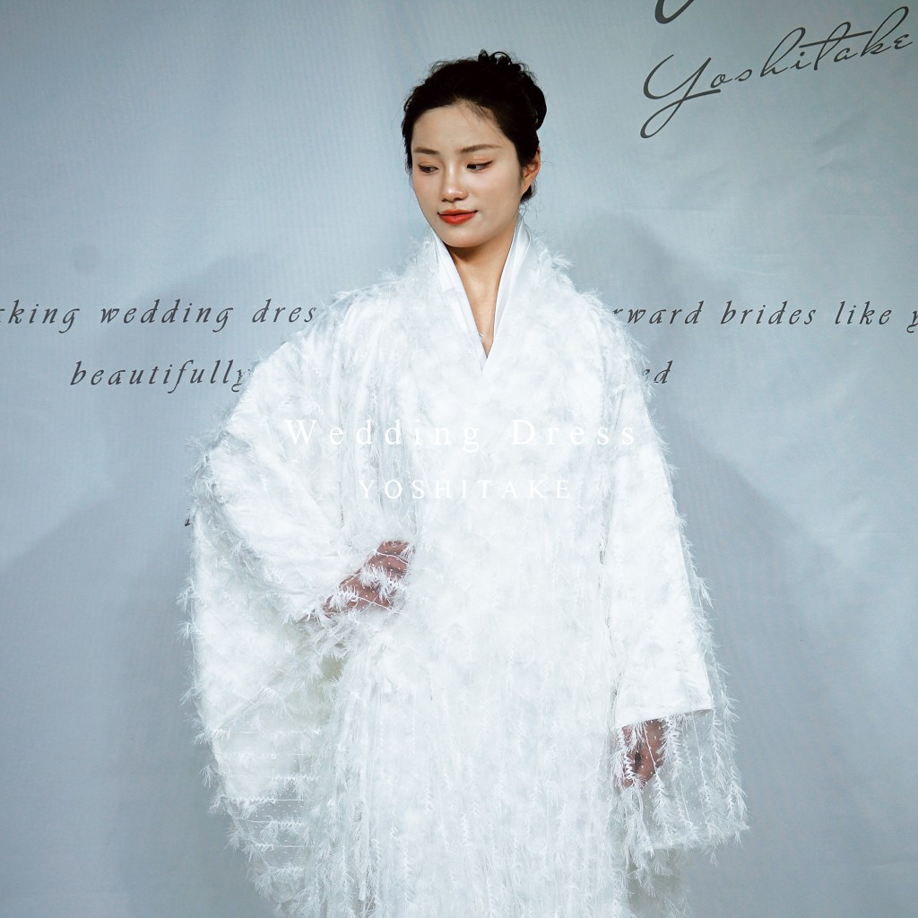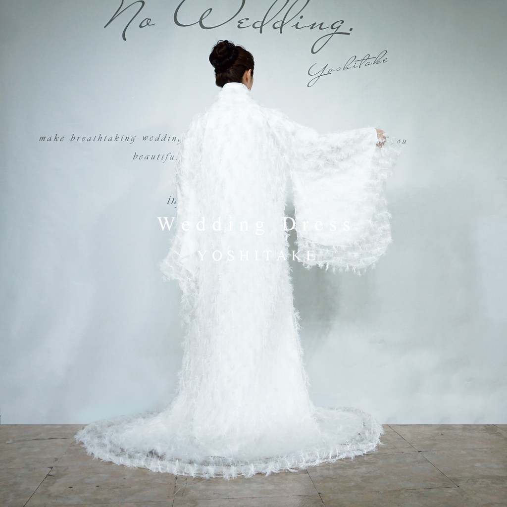 伝統的な「白無垢」の美しさに、モードの風を吹き込んだ着物風ドレス。
