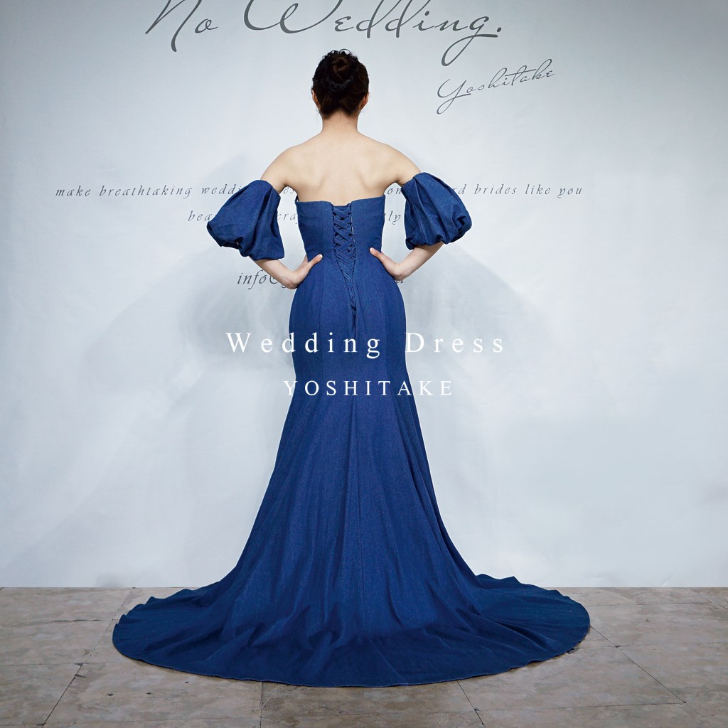 カジュアルなデニムを取り入れ、上品なマーメイドラインのドレスを制作しました。