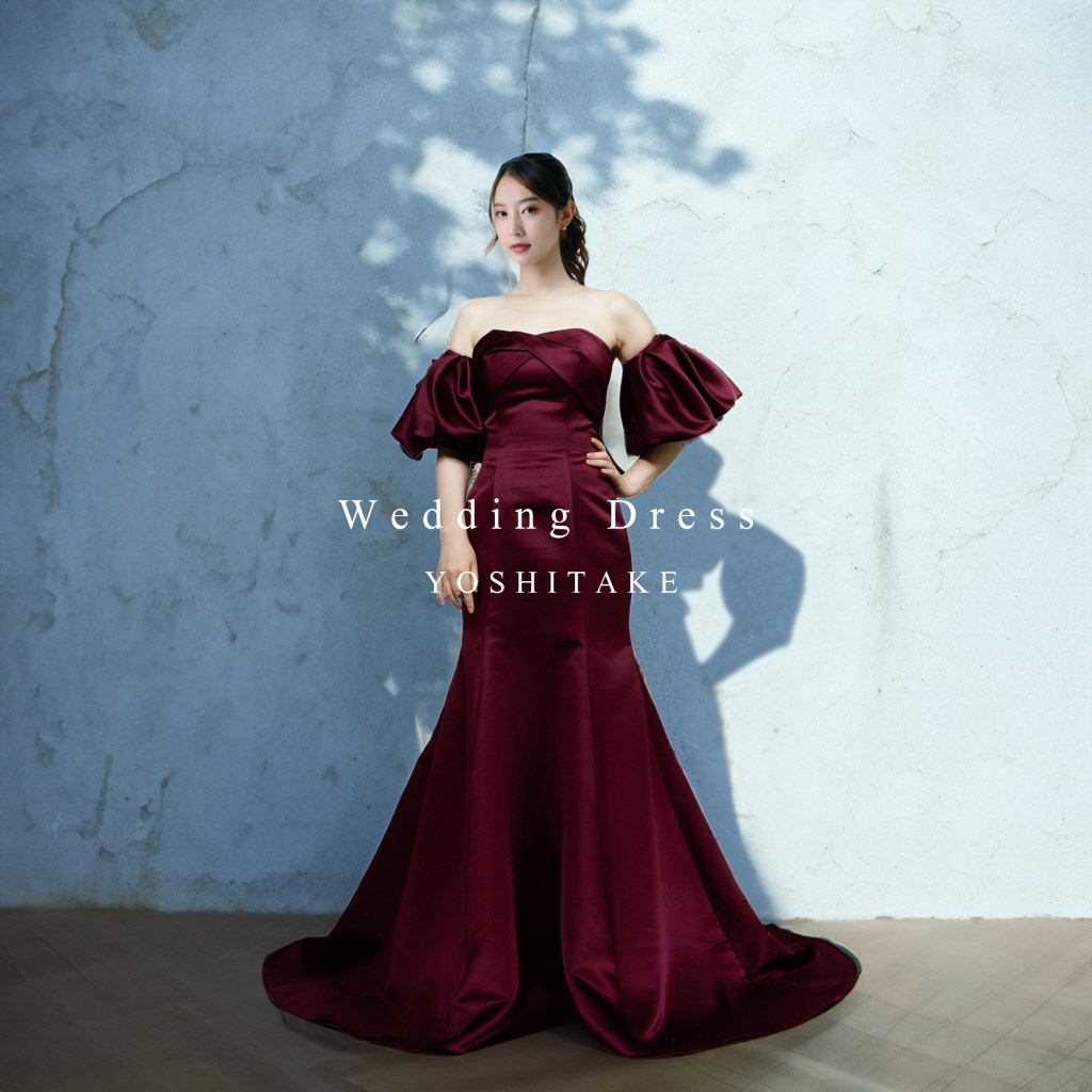 深みのあるワインレッドが大人っぽいマーメイドドレス。