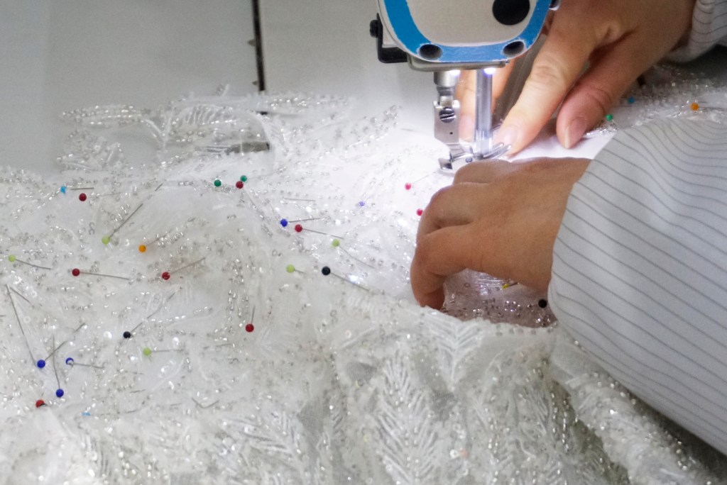 華やかさの中にも上品さを感じていただけるよう、細部まで丁寧にステッチを重ねていきます。