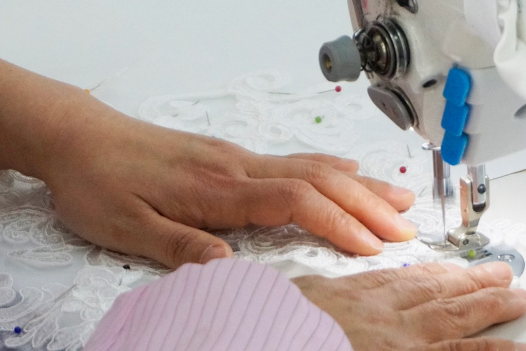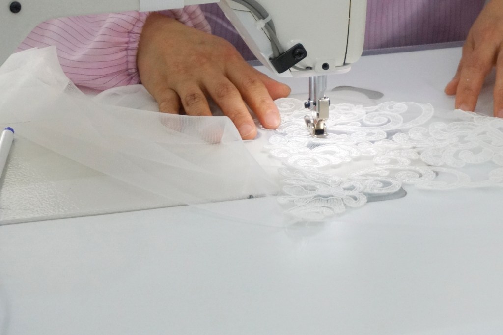 同じレースでも、置く位置や重なり方によって印象が大きく変わるため、ミシンを進める手にも自然と集中力が宿ります。