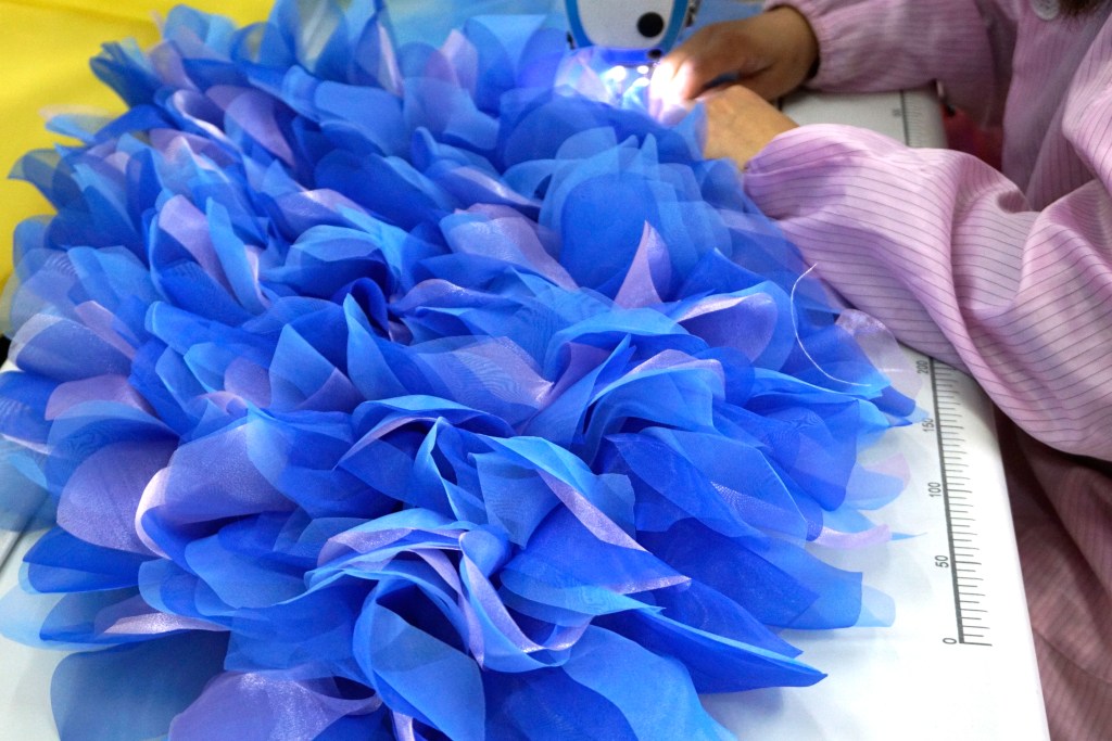 今回は、ブルーのラメチュールに通常のチュールを張り付けています。