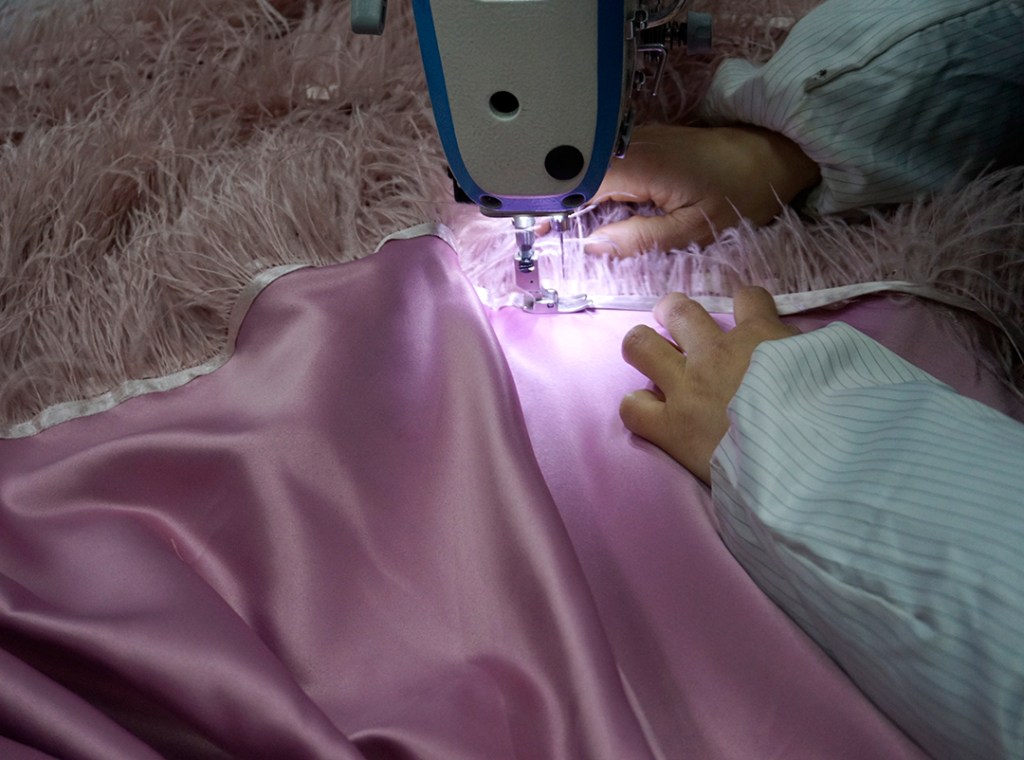 サテンの光沢は、そのハリとツヤ感で肌をより美しく見せてくれます。