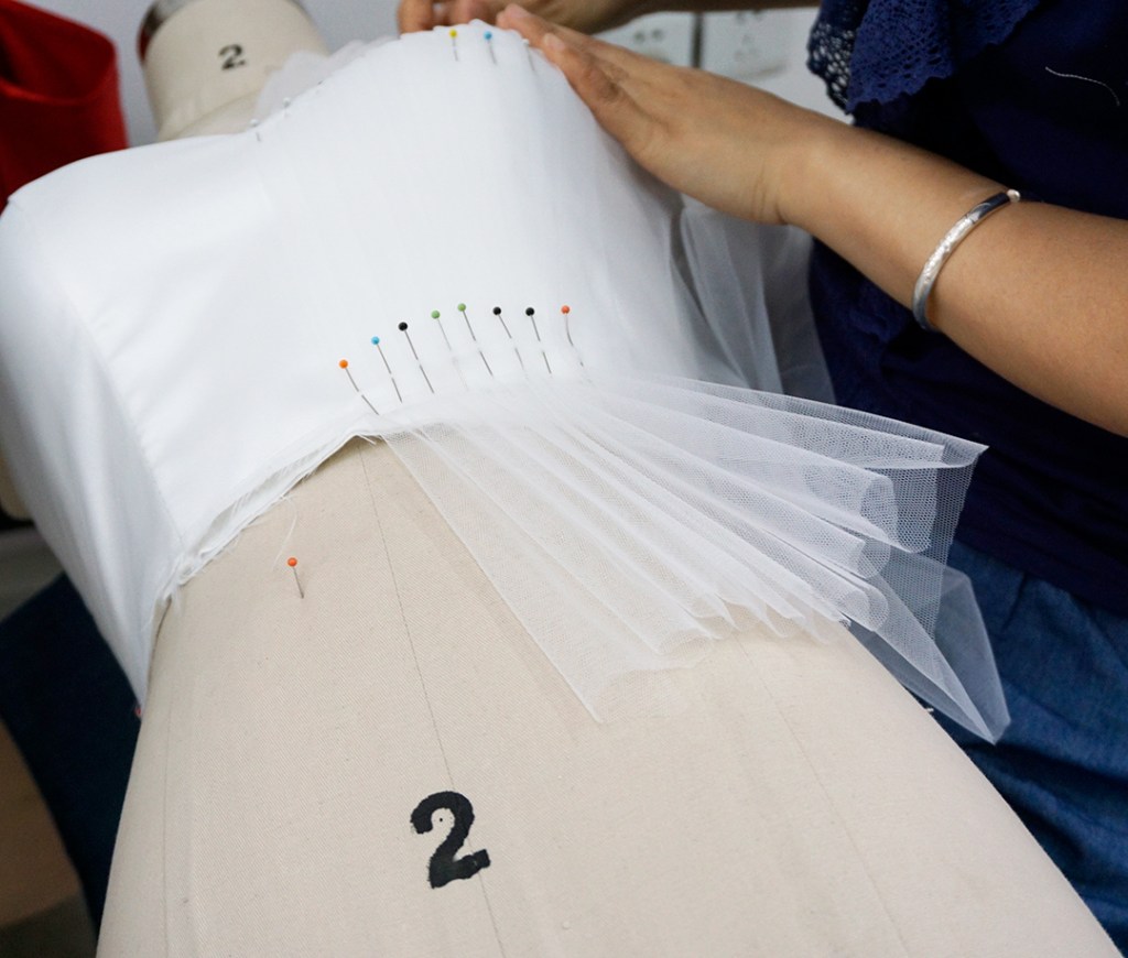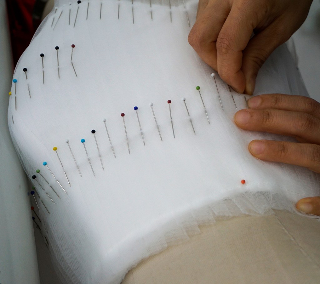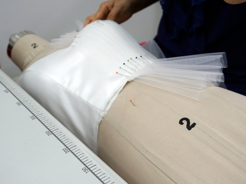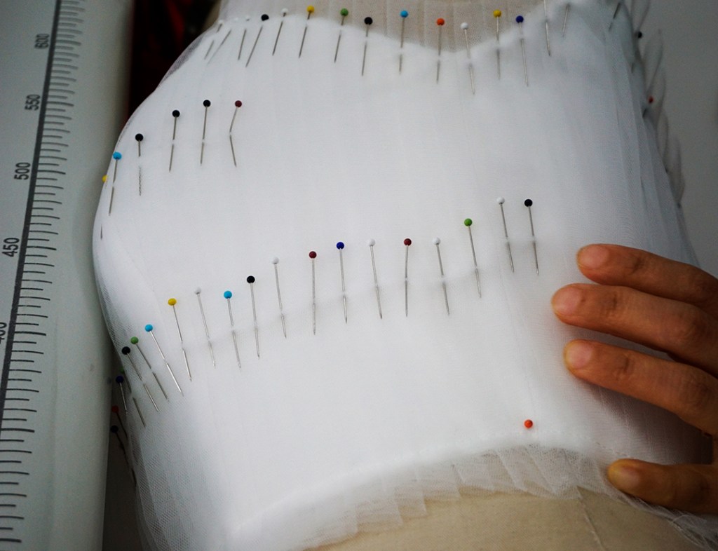今回は白いドレスの上半身を制作しています。