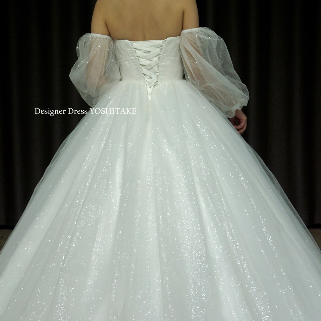 ふわふわのロングトレーンと袖は取りはずし可能。